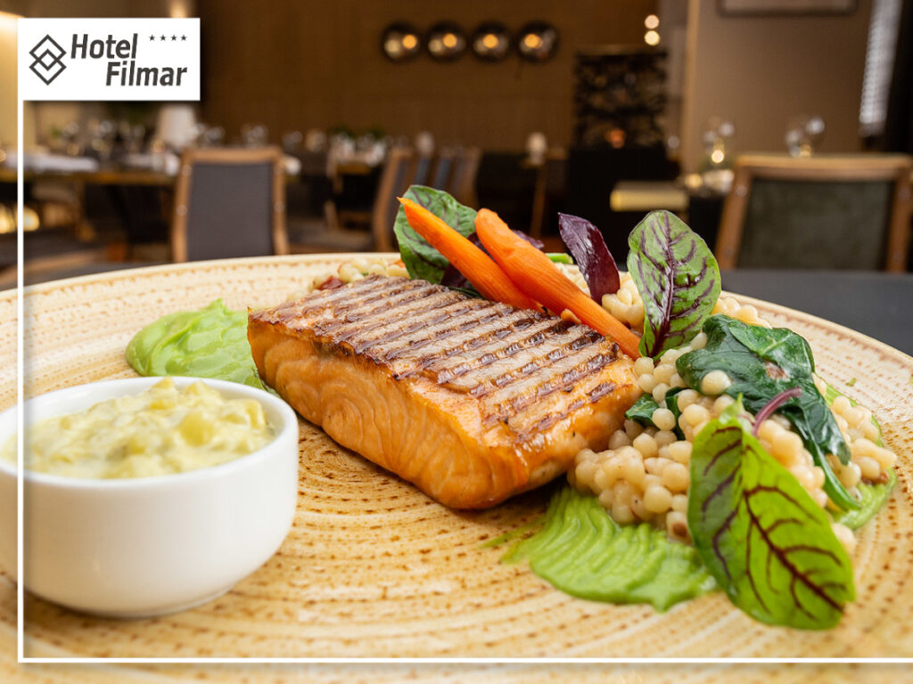 Nasz Hotel prowadzi elegancką restaurację, która idealnie nadaje się na romantyczną kolację. Wieczór można rozpocząć od pysznego aperitifu, a następnie skosztować wykwintnych dań kuchni polskiej i europejskiej. Menu może być dostosowane specjalnie na Walentynki – z romantycznymi akcentami, jak np. krewetki, owoce morza, czy wykwintne desery. Co więcej, w Walentynki w naszych kartach pojawiają się pozycje specjalnie stworzone właśnie na tę okazję. To prawdziwa uczta dla smaku, która wprowadza w dobry nastrój na dalszą część wieczoru.
